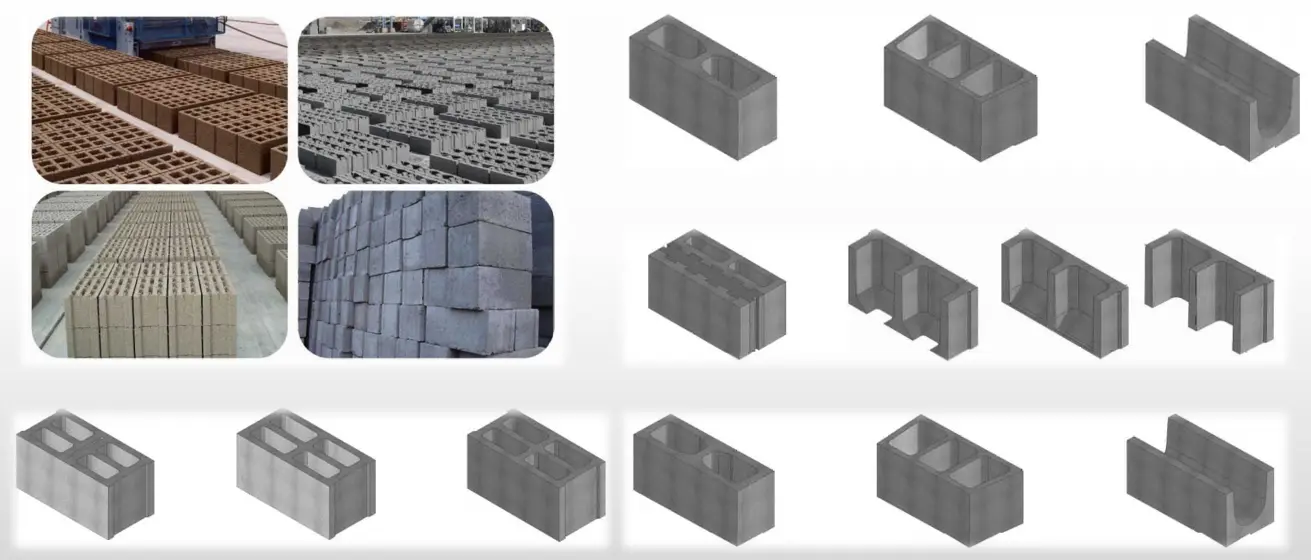 Cu ani de experiență în producția de matrițe pentru mașini automate pentru blocuri, QGM Block Machine poate furniza o gamă largă de matrițe pentru mașini automate pentru blocuri. În plus față de lista de produse de mai jos, vă puteți personaliza, de asemenea, propria matriță automată unică pentru mașină de blocare, în funcție de nevoile dumneavoastră specifice.